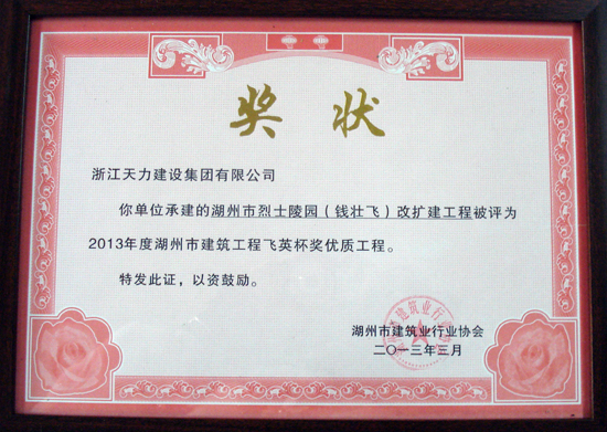 湖州市烈士陵園(錢壯飛)改擴(kuò)建被評(píng)為2013年度飛英杯
