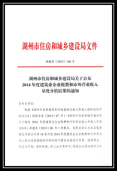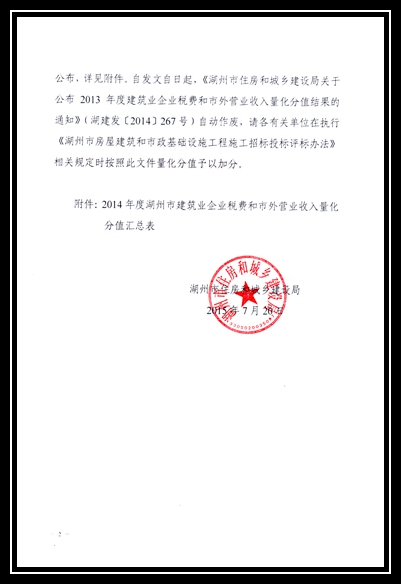 2014年度建筑業企業稅費和市外營業收入量化分值結果的通知