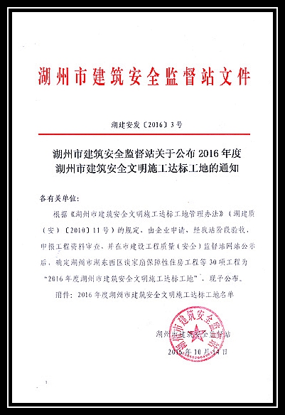 2016年度湖州市建筑安全文明施工達(dá)標(biāo)工地