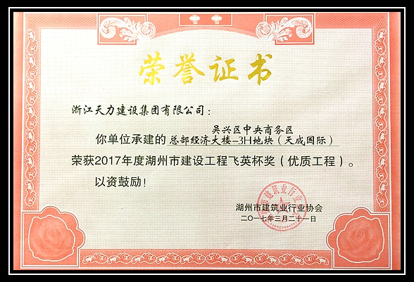 2017年度湖州市建設工程“飛英杯”獎優質工程