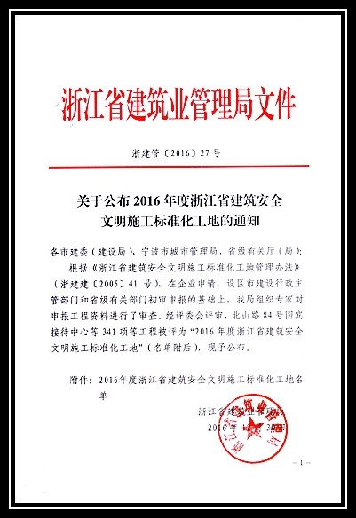 2016年度浙江省建筑安全文明施工標(biāo)準(zhǔn)化工地