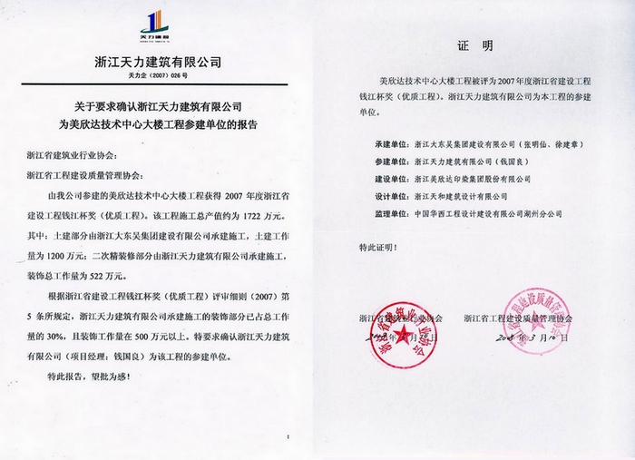 美欣達技術中心大樓2007年度浙江省錢江杯