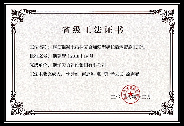 2017年度省級鋼筋混凝土結構復合加強型超長后澆帶施工工法