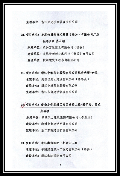 2019年度湖州市建筑工程優(yōu)質(zhì)結(jié)構(gòu)獎(jiǎng)(第二批)