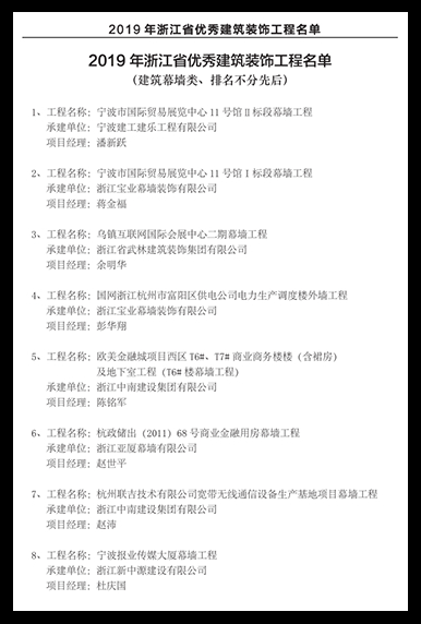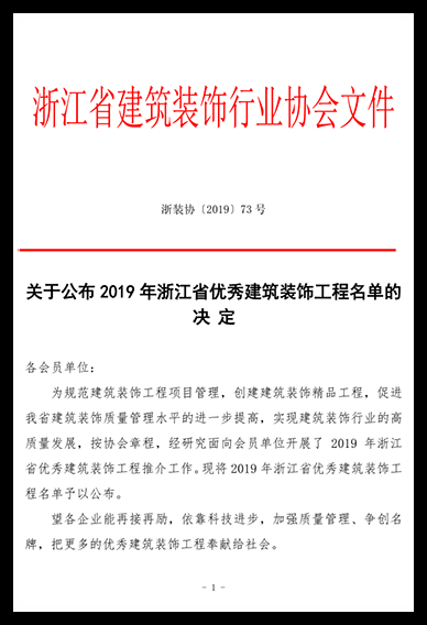 2019年浙江省優(yōu)秀建筑裝飾獎(jiǎng)工程