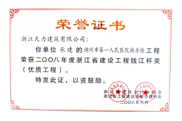 湖州第一人民醫(yī)院病房樓2008年度浙江省錢(qián)江杯