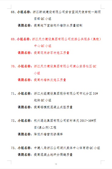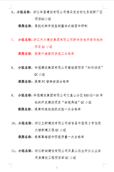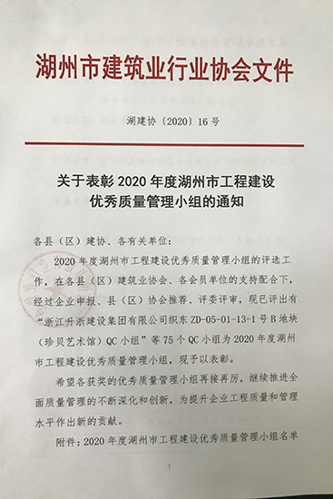 2020年度湖州市工程建設優秀質量管理小組