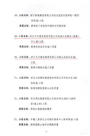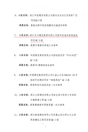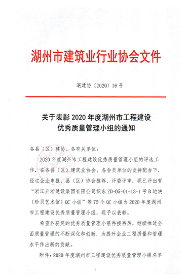 表彰2020年度湖州市工程建設優秀質量管理小組