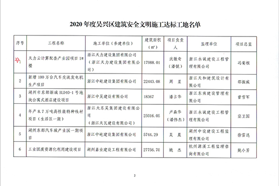 2020年度吳興區(qū)建筑安全文明施工達標工地