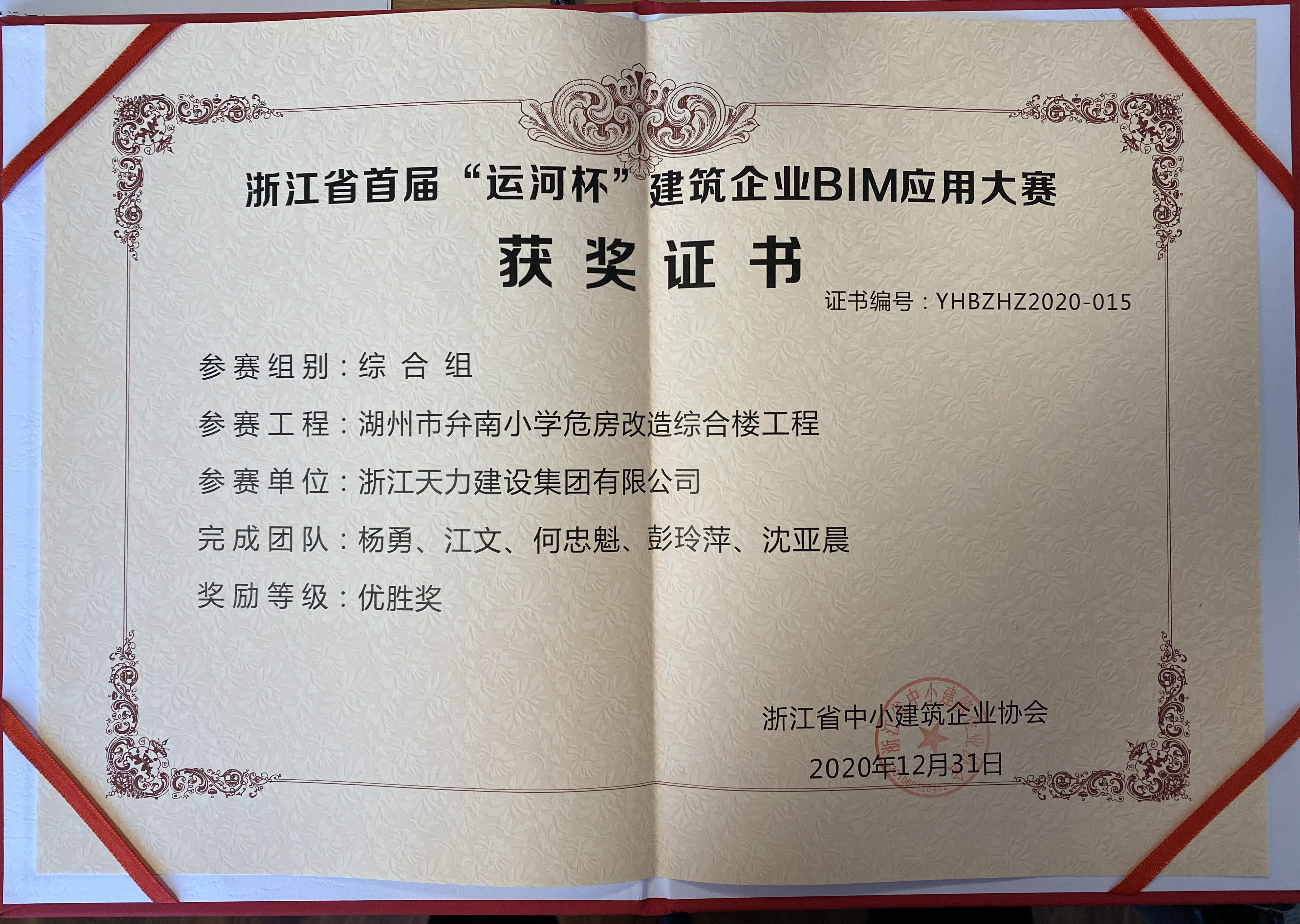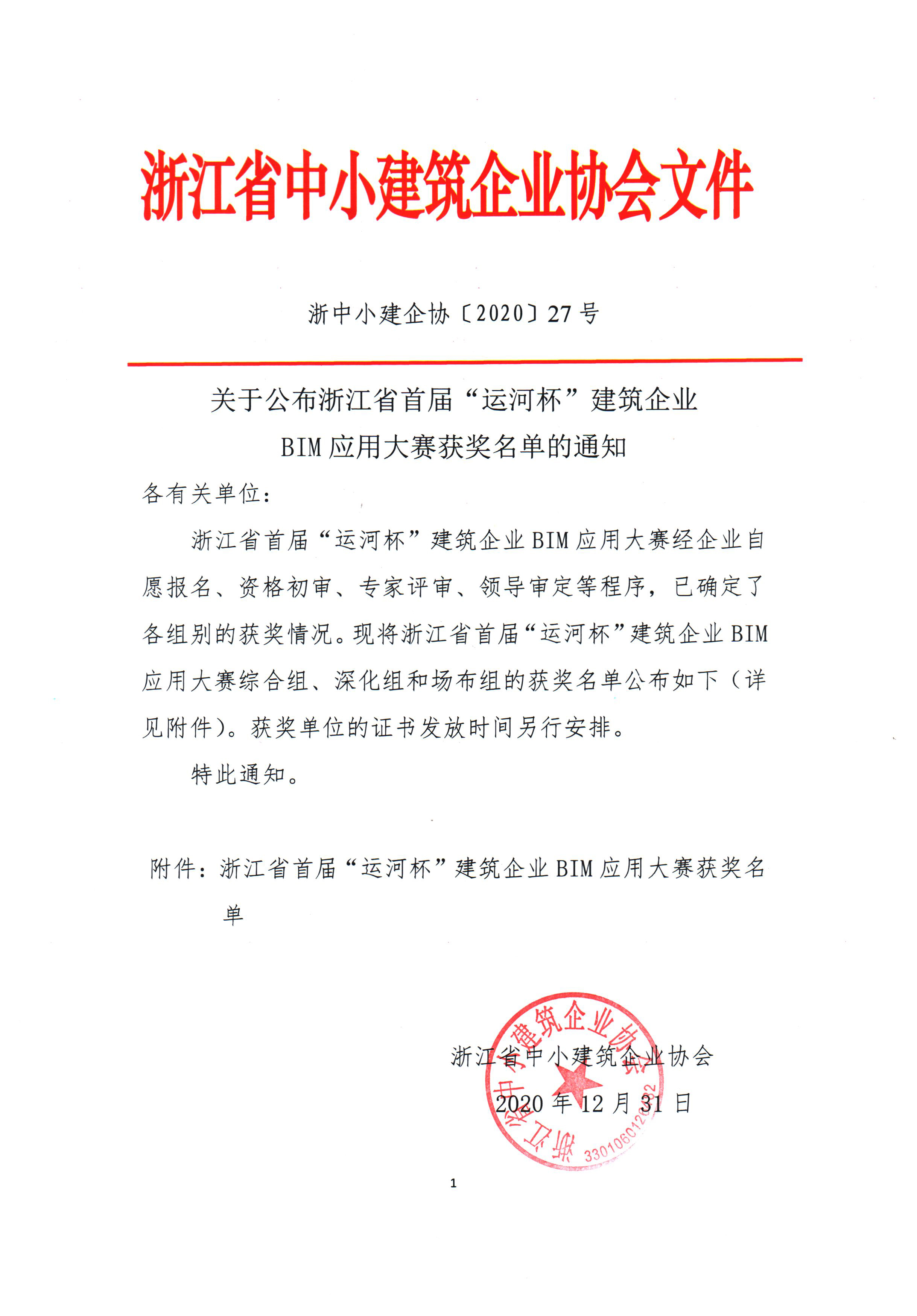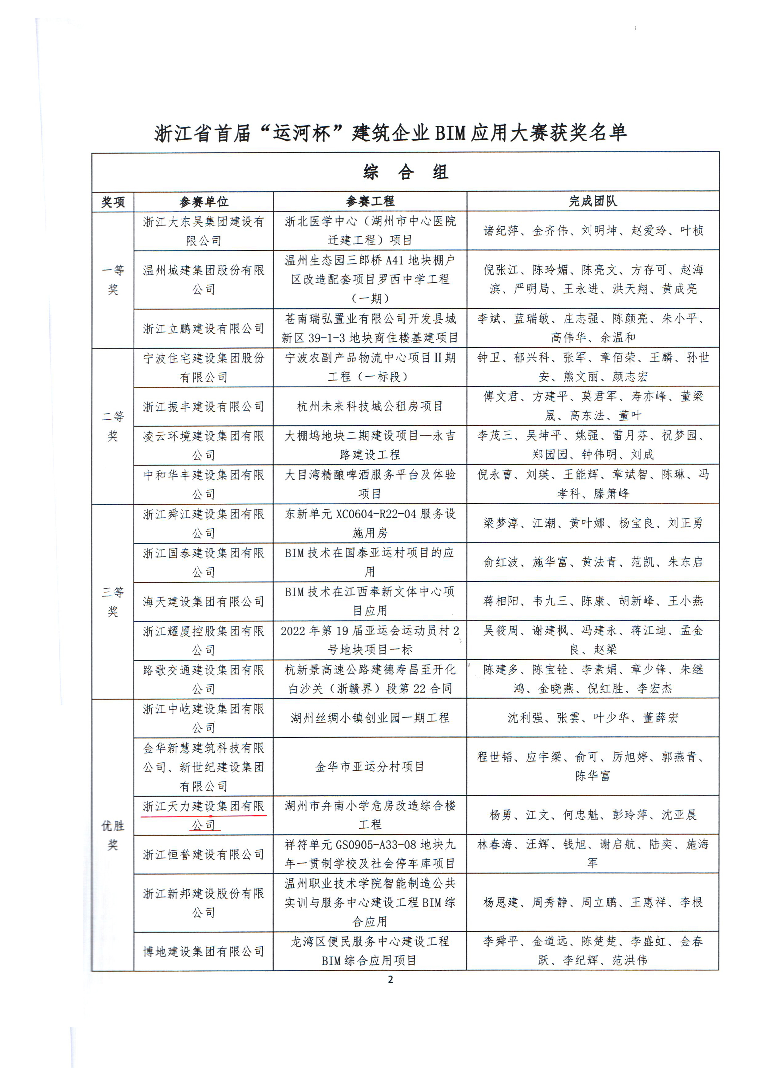 浙江省首屆“運河杯”建筑企業BIM應用大賽獲獎