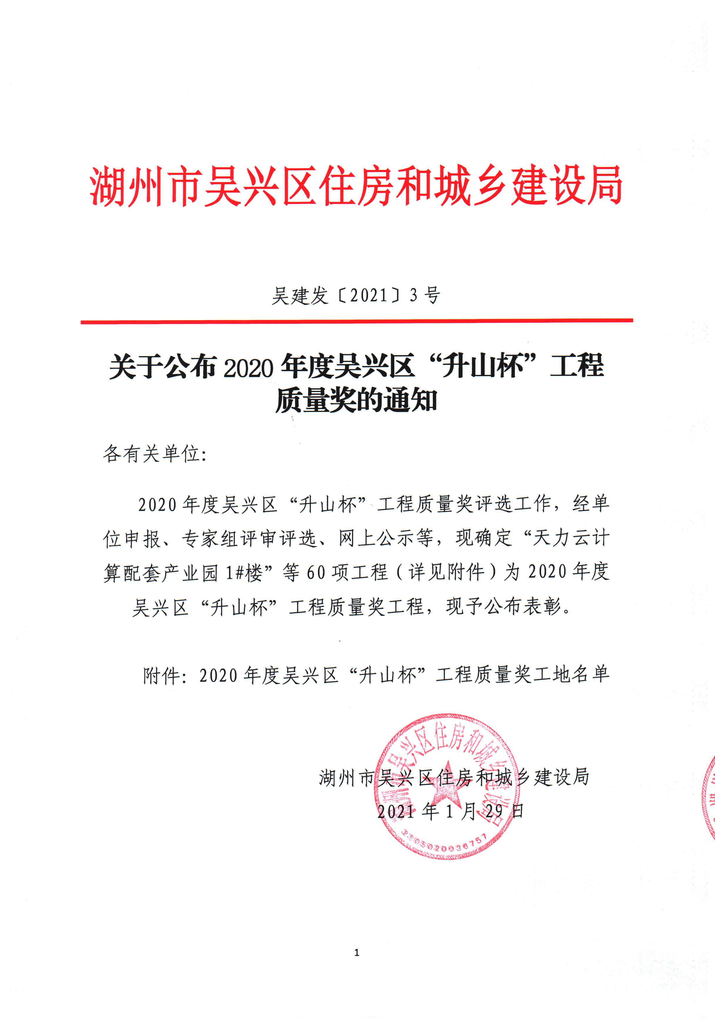 2020年度吳興區(qū)“升山杯”工程質(zhì)量獎