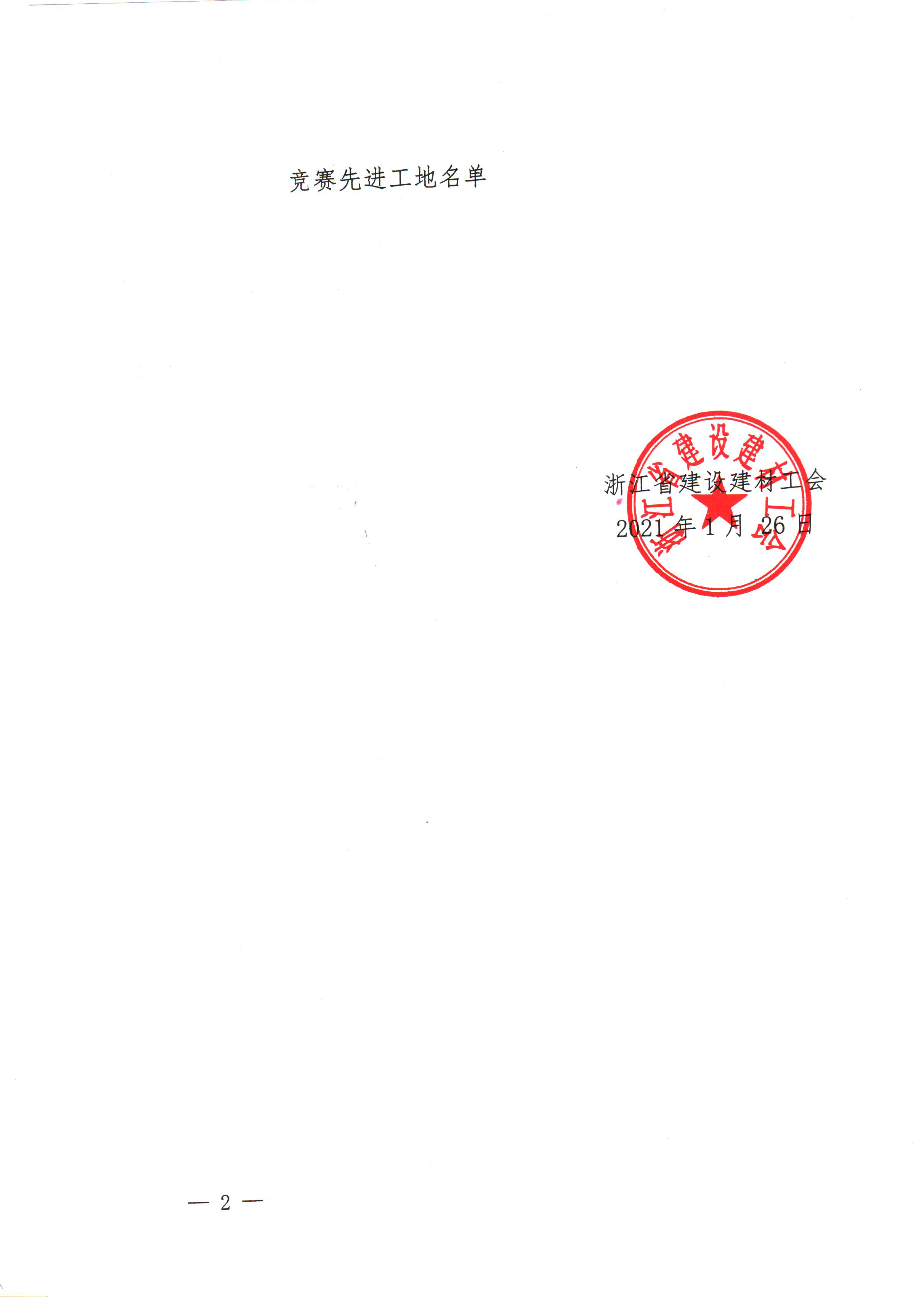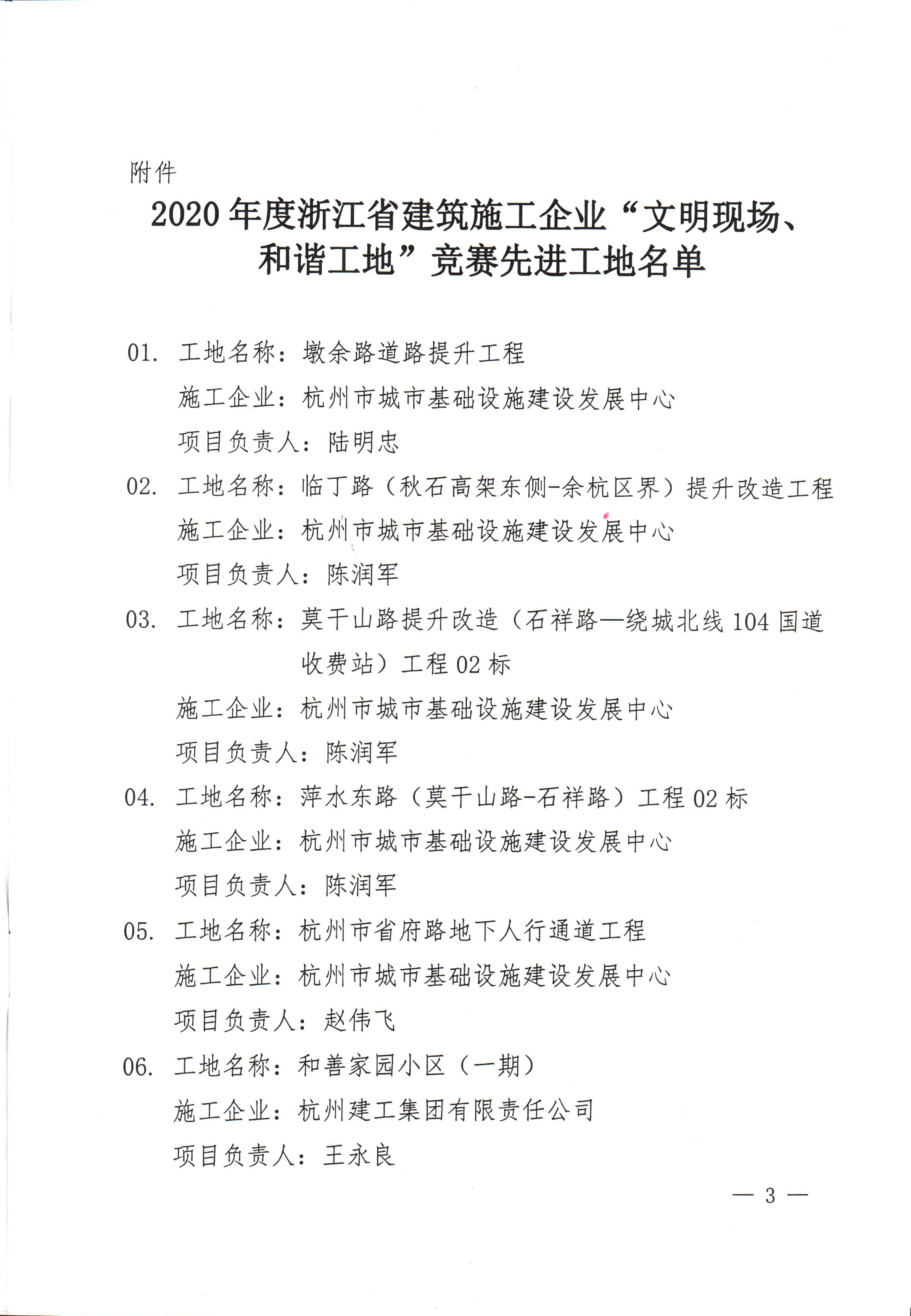 2020年度浙江省建筑施工企業(yè)“文明現(xiàn)場、和諧工地”競賽先進(jìn)工地