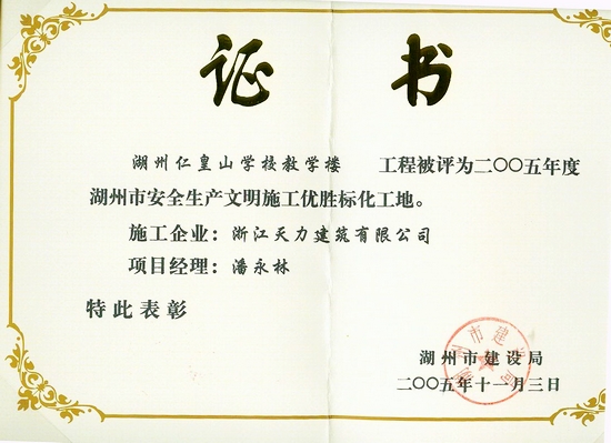 湖州仁皇山學校教學樓2005年度湖州市優勝標化