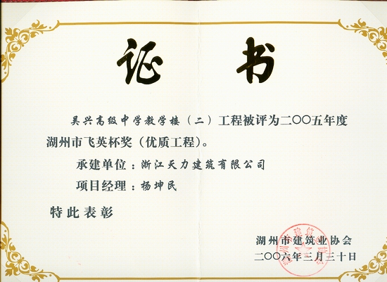 吳興高級中學教學樓(二)2005年度湖州市飛英杯