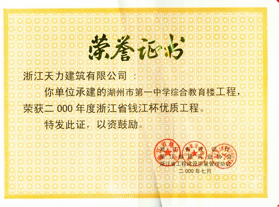 湖州市第一中學綜合教育樓工程2000年度浙江省錢江杯