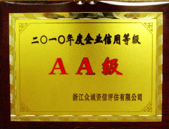 2010年度企業(yè)信用等級AA級