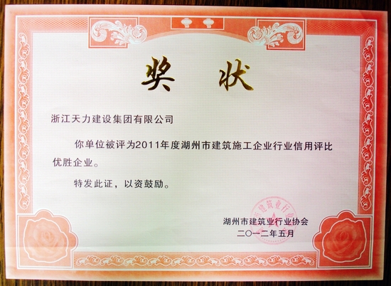 2011年度湖州市建筑施工企業(yè)行業(yè)信用評(píng)比優(yōu)勝企業(yè)