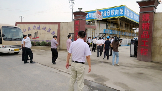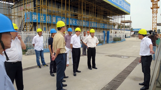 2014年9月29日上午,湖州市人大主任朱坤民、常務副市長楊建新、區委書記蔡旭昶、吳興區常務副區長周建新、區人大常委會主任吳旭等有關部門負責人和公司董事局主席楊虎麟、副總經理印培榮的陪同下,視察了我公司承建的高新區現代物流創業中心,就抓好建筑工地揚塵管理、建筑垃圾清理,推進大氣霧霾治理進行專題調研。