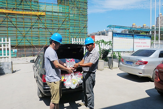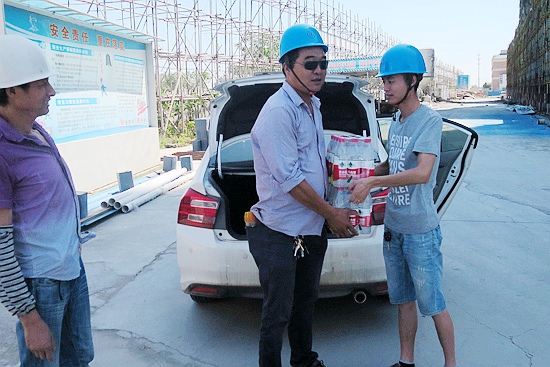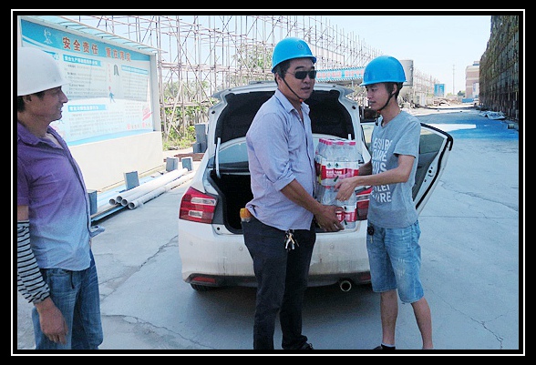 盛夏時(shí)節(jié),湖州地區(qū)連日來(lái)驕陽(yáng)似火,高溫酷熱,但是公司廣大職工不畏困難,戰(zhàn)高溫、斗酷暑,依舊奮戰(zhàn)在工地,為實(shí)現(xiàn)公司全年目標(biāo)而奮力拼搏。7月30日,集團(tuán)公司開(kāi)展高溫慰問(wèn)活動(dòng),公司領(lǐng)導(dǎo)副總經(jīng)理印培榮、工程部副經(jīng)理周正宇帶領(lǐng)公司工程部管理人員深入施工現(xiàn)場(chǎng),看望、慰問(wèn)奮戰(zhàn)在高溫一線的廣大職工,為他們送去了風(fēng)油精、藿香正氣水、龍虎人丹等夏季防暑物品與飲品,為職工們帶來(lái)了絲絲“清涼”。